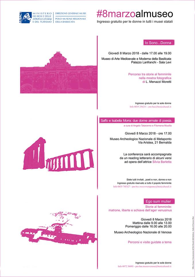 Free admission of women to all the state museums of Basilicata. #8marzoalmuseo