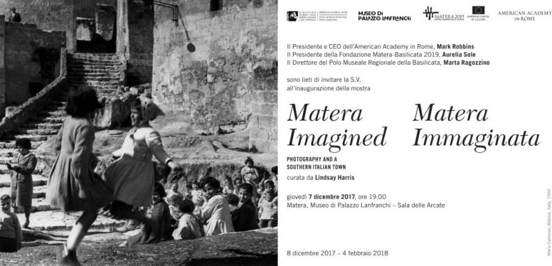 After the success of Rome, the exhibition MATERA IMAGINED / MATERA IMMAGINATA opens its doors. Photography and a Southern Italian Town, curated by Lindsay Harris and realized by the American Academy in Rome in collaboration with the Pole Museum of Basilicata and the support of the Matera – Basilicata Foundation 2019, who wanted to bring to Matera the exhibition that restores the construction of the image of Matera after World War II through the gaze of photography that contributes to shaping, in those special years, the fate of the City of Stones.
