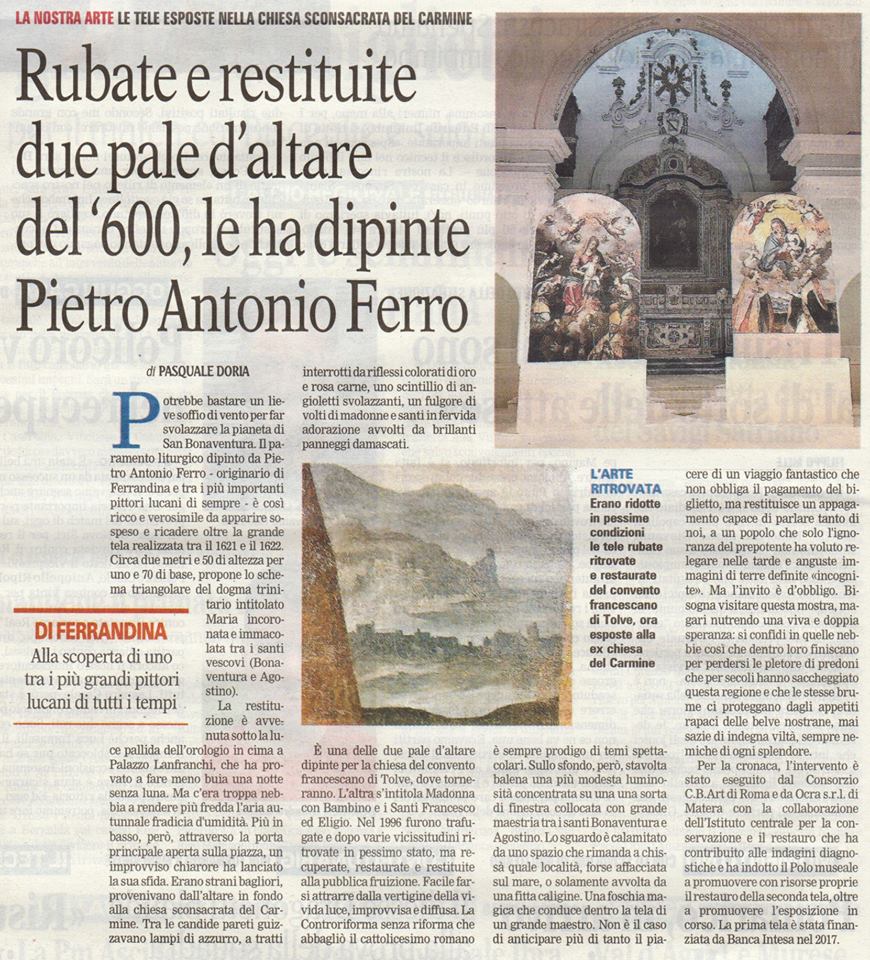 Restituzione. Il restauro di due dipinti “perduti” di Ferro